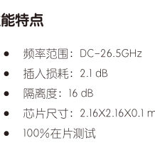 采用了片上通孔金属化工艺,保证了良好的接地;芯片背面进行了金属化处理,适用于导电胶粘接或共晶烧结工艺。